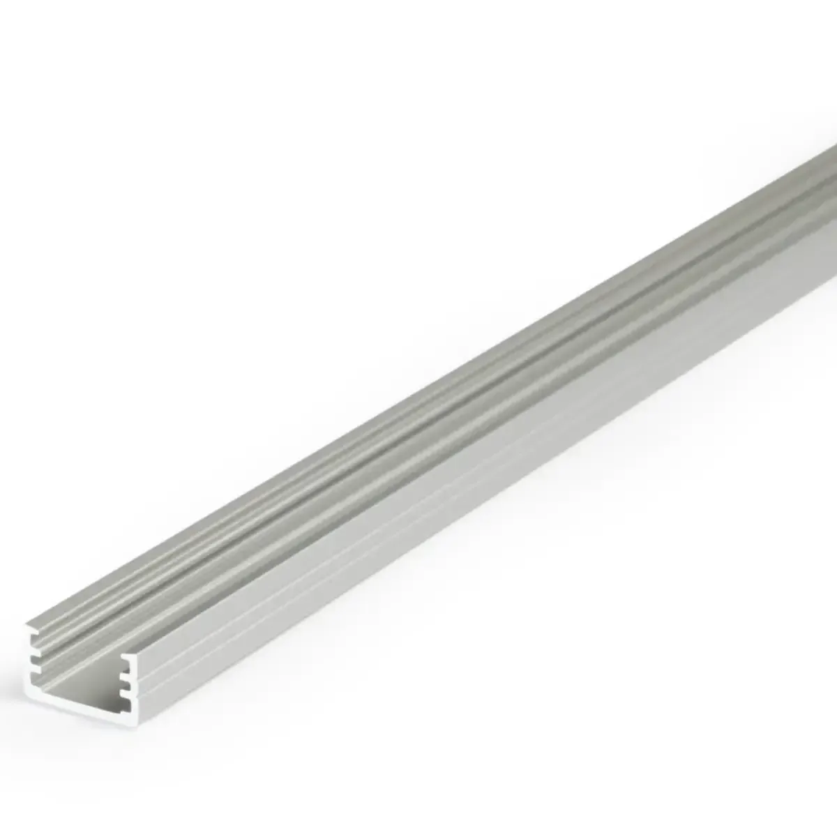 un profilé de surface. Un profilé de petite taille pour une utilisation universelle pour la bande à LED avec une largeur maximale de 8 mm. Sa petite taille (12,2 mm x 7 mm), et la simplicité de sa forme augmentent considérablement ses possibilités d’utilisation et de conception. Il est parfait pour l'éclairage du mobilier, ainsi que sur les surfaces architecturales pour éclairer les voies de passage, comme l'éclairage au sol, éclairage d'escalier, il peut même  être fixé dans les carreaux de salle de bains. Le profilé ne nécessite pas l'utilisation de supports de montage, et peut être monté avec  des vis, bandes adhésives professionnelle deux faces ou colles de montage. Pour ce profilé, on propose trois types de diffuseurs (opale, givré et transparent) et un ensemble de bouchons d’extrémité.
