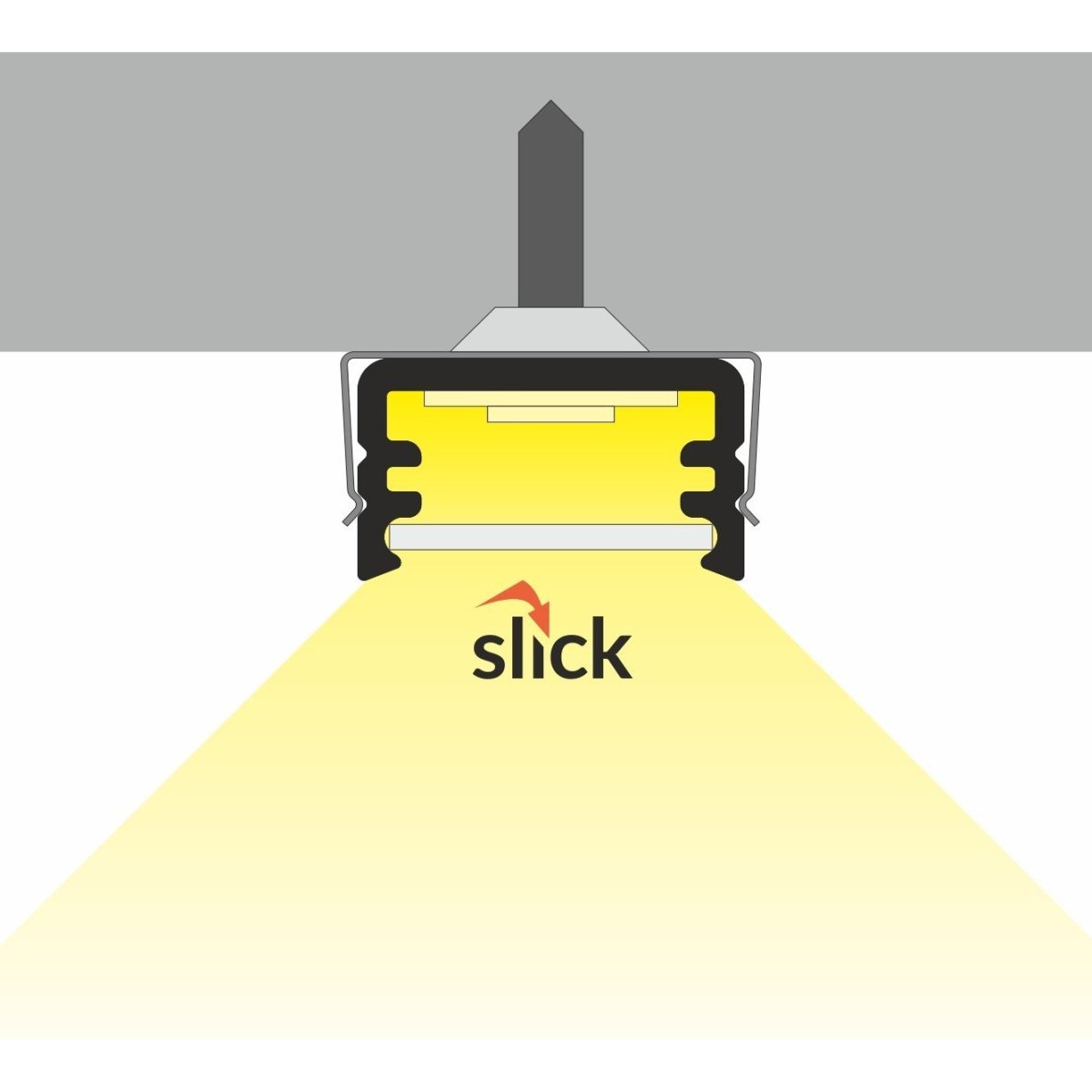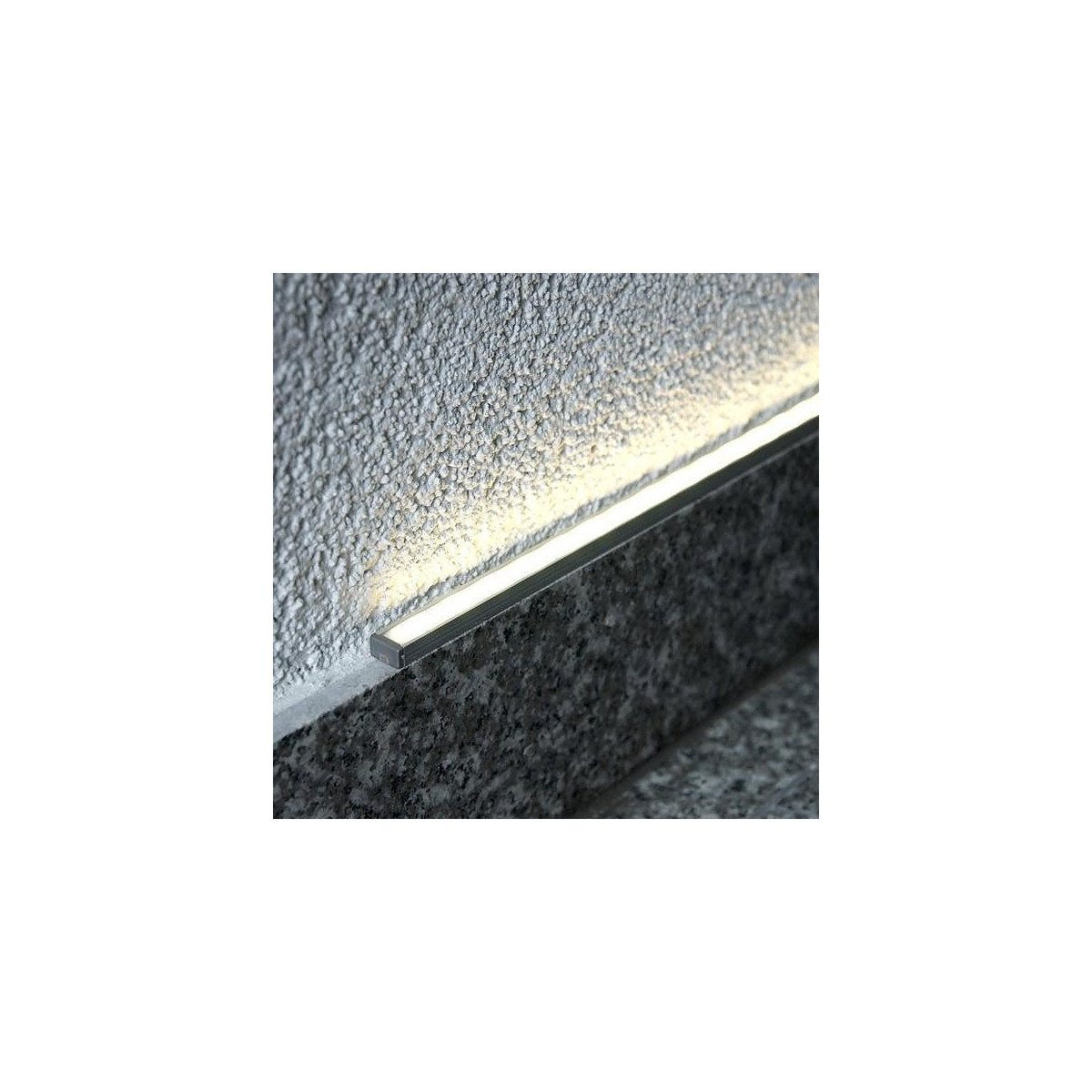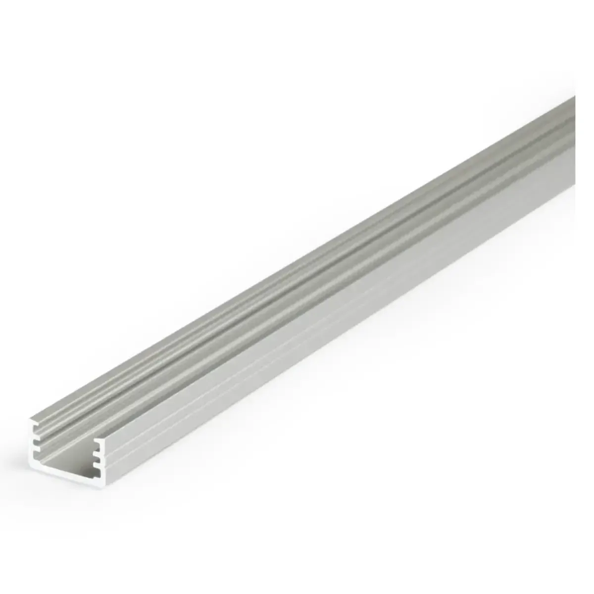 un profilé de surface. Un profilé de petite taille pour une utilisation universelle pour la bande à LED avec une largeur maximale de 8 mm. Sa petite taille (12,2 mm x 7 mm), et la simplicité de sa forme augmentent considérablement ses possibilités d’utilisation et de conception. Il est parfait pour l'éclairage du mobilier, ainsi que sur les surfaces architecturales pour éclairer les voies de passage, comme l'éclairage au sol, éclairage d'escalier, il peut même  être fixé dans les carreaux de salle de bains. Le profilé ne nécessite pas l'utilisation de supports de montage, et peut être monté avec  des vis, bandes adhésives professionnelle deux faces ou colles de montage. Pour ce profilé, on propose trois types de diffuseurs (opale, givré et transparent) et un ensemble de bouchons d’extrémité.