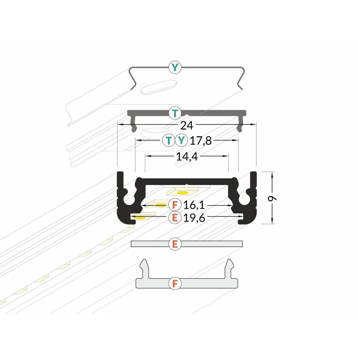 Profile LED Plat14 Aluminium Anodisé, Brut, Noir, Blanc