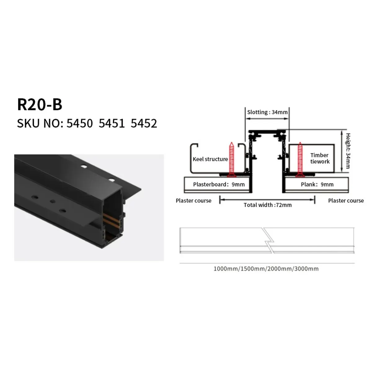 Fabriqué en aluminium de haute qualité, le rail R20 assure une dissipation thermique optimale et une durabilité exceptionnelle. Sa finition noir mat haut de gamme s'adapte à tous les styles de décoration, du style industriel au contemporain chic.