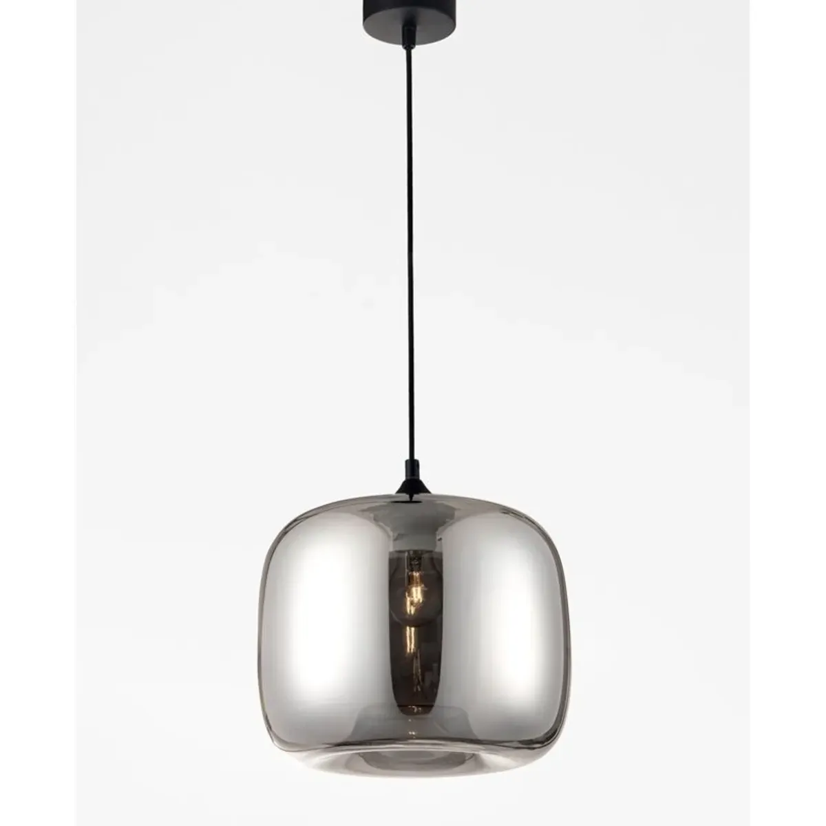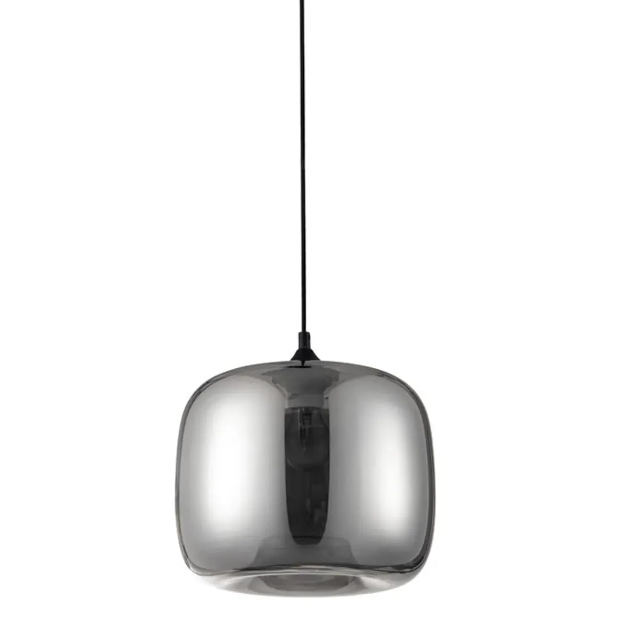 Le contraste entre le verre chromé et la monture en métal noir confère à ce modèle un style intemporel. Le câble en tissu noir réglable permet d'ajuster la hauteur selon votre configuration (jusqu'à 120 cm), s'adaptant aussi bien aux plafonds hauts qu'aux espaces plus intimistes.