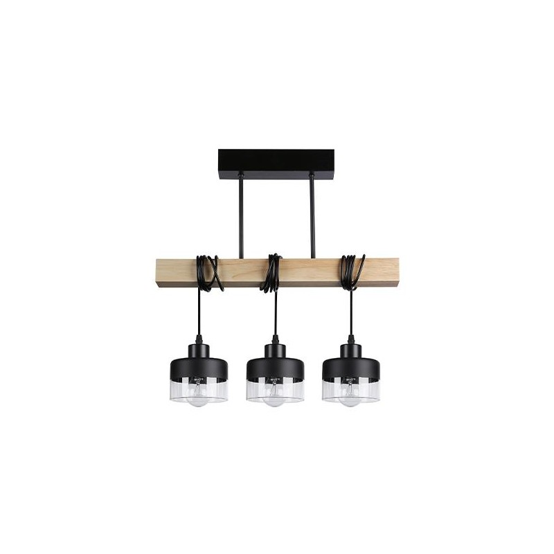 Suspension Verre + Bois Noir E27 x 3 500mm